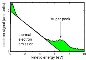 Excited atoms often decay via the emission of radiation, a process that is known as fluorescence. A different scenario can emerge when an excited atom is surrounded by other excited atoms, ions and electrons. Such a situation is achieved when an intense laser pulse interacts with a nanoscale object. In this case, an excited atom can decay by transferring its excess energy to another particle in the environment. Researchers from the Max-Born-Institut in Berlin, the University of Rostock, and the University of Heidelberg found evidence for such an energy exchange involving electrons that are trapped within a nanocluster. They observed a so far unidentified peak in the electron spectrum following the ionization of a nanocluster by a near-infrared (NIR) laser pulse. The researchers attributed this signal to the relaxation of one electron from an excited Rydberg atom and the simultaneous transfer of the excess energy to a second electron that can escape from the cluster. The obtained results, which were published in Nature Communications, are of universal nature and expected to play an important role in other nanoscale systems including biomolecules.